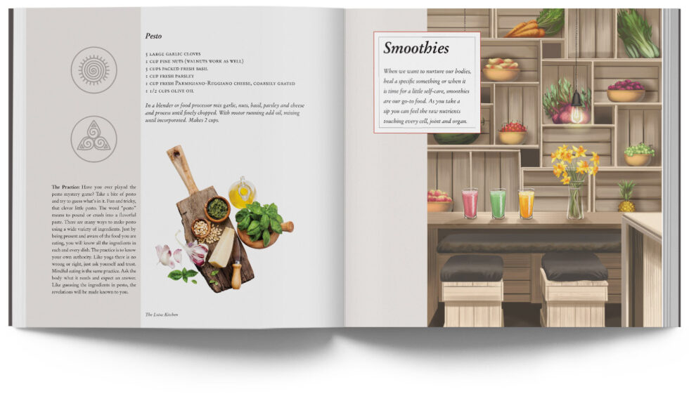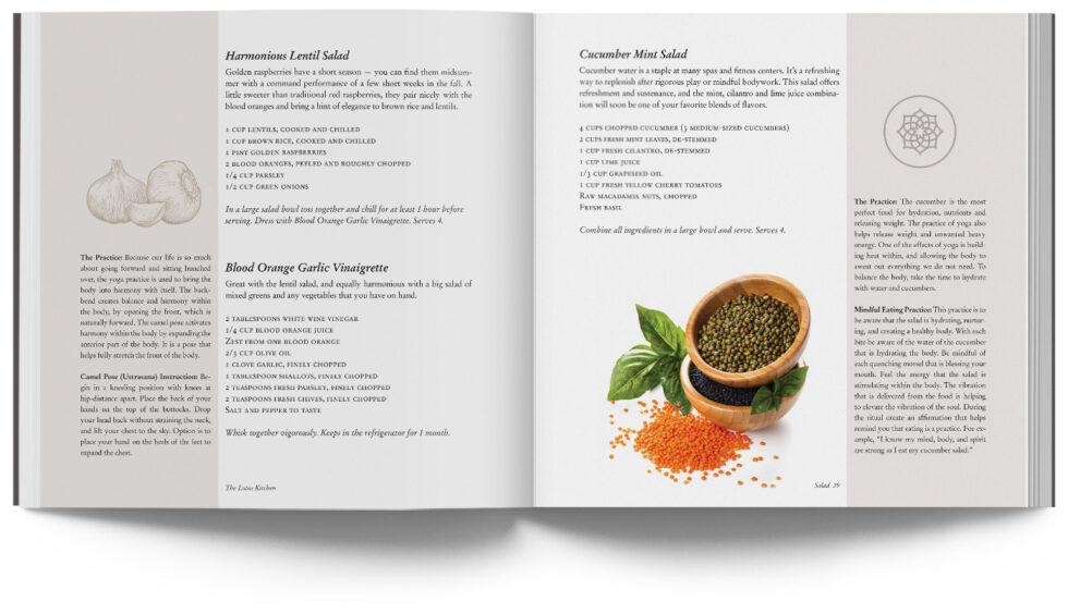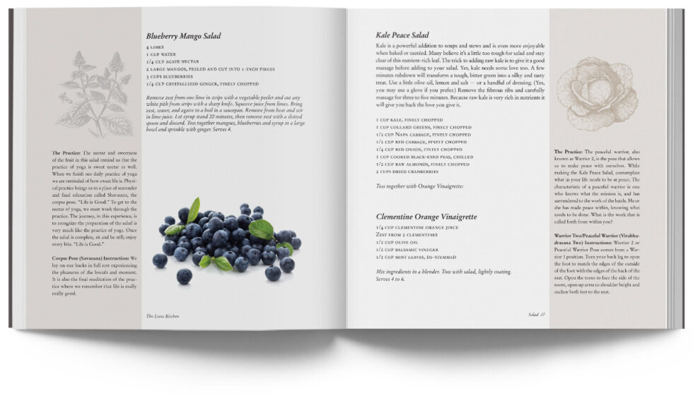During my years at designSimple, we created six or eight cookbooks for Huqua Press. This wasn’t my favorite, but it was an interesting challenge, design-wise: A traditional cookbook surrounded by recipe-specific yoga practices flowing as sidebars along the outer edges.